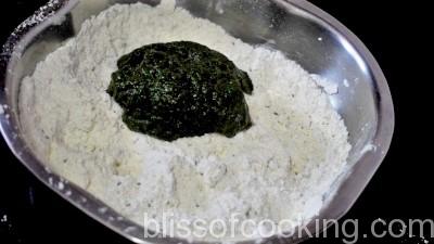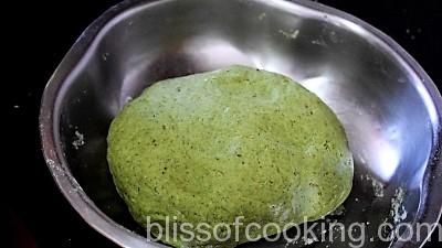 - Place all the ingredients for spinach stick in a food processor bowl, and make dough without adding any water. Keep covered and let it rest for 10 minutes.
