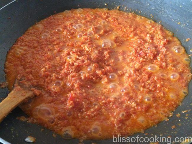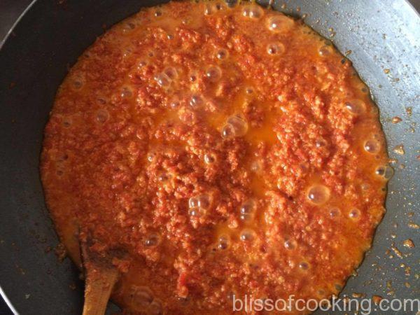 - Now add the sugar and stir till all the sugar syrup formed has been absorbed
