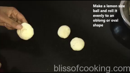- Make a lemon size ball and roll it evenly to an oblong or oval shape.