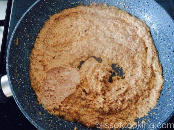 - Heat 2 tablespoon of oil, add the cumin, and then the paste.