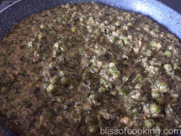 Methi Matar Malai – Fenugreek and Green Peas Curry, has a creamy texture. It is made with green peas and methi (fenugreek leaves). The bitterness of methi is well complimented with the sweetness of matar. Cream and khoya helps to get the perfect creamy texture.