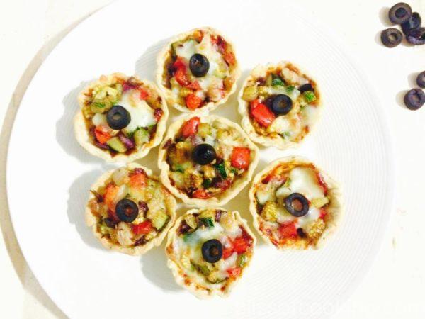 Pizza Tartlets are easy to make appetizer. These Mini Pizzas look amazing in this avatar. These Veggie Pizza appetizers are great party snack loved by all. The best part is, you can assemble these ahead of time and bake them when required.