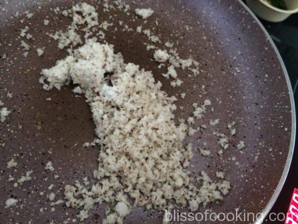 - In a pan dry roast one by one peanuts, sesame, poppy and coconut on low heat and keep aside.