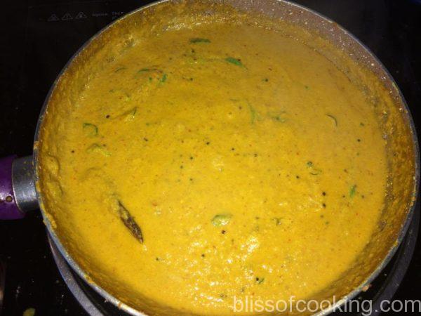 - Add tamarind pulp and salt. (Jaggery optional)