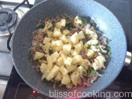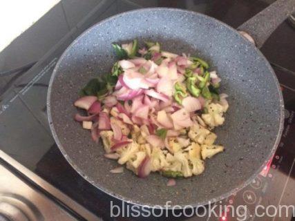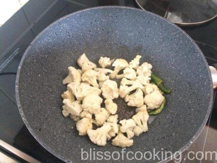 - Close the lid of the pan for 3-4 mins so that the caulfilower is cooked.