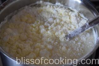 • In a sauce pan pour rest of the milk add sugar and bring it to a boil. Now add the milk powder mix and boil by string continuously.