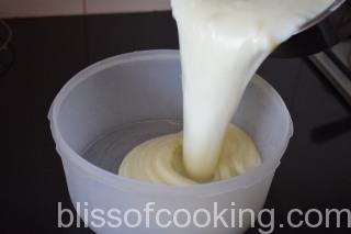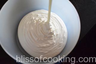 • Now pour this mixture in a freezer safe container and freeze for 4 hours or till almost set but not hard.