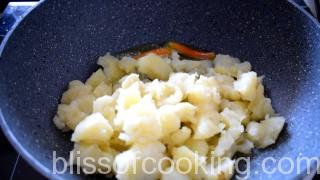 • Peel the potatoes and roughly chop them or slightly smash them keeping some chunks.