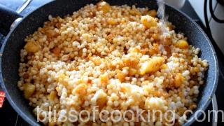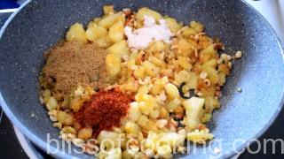 • Add the soaked sabudana and toss well. Cover and leave for 2 to 3 minutes.