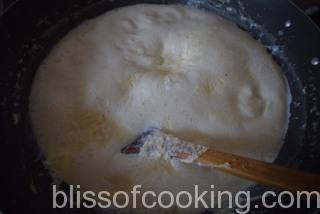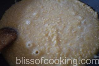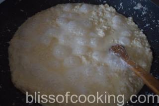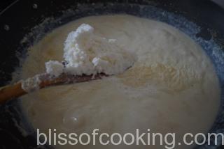 - Add the sugar and stir till the sugar melts and it starts to bubble again.