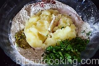 - In a bowl mix all the ingredients except ghee / groundnut oil.