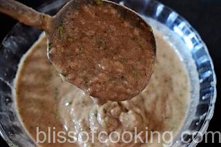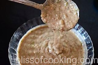 - Now make batter by adding water slowly. The consistency should be neither too thick nor too thin.