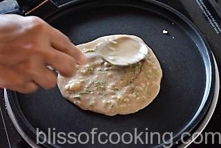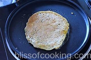 - Drizzle a few drops of ghee and flip to the other side, add ghee.