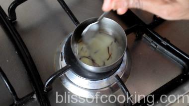 - Crush the saffron with the back of a spoon so that the colour and flavour is infused in the milk.