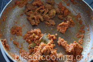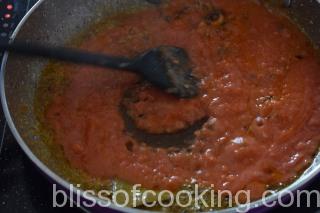 - Add the tomato paste and saute till oil starts to separate.