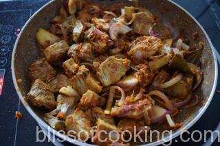 - Add the roasted onion paste and saute for a minute.