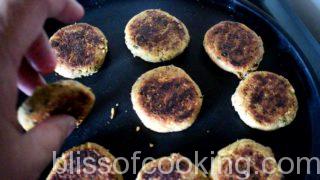 - Heat a nonstick skillet or a pan, drizzle oil, place the kababs in batches and shallow fry on both the sides to golden brown.