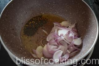 - In the same pan heat oil, add the mustard, fenugreek, and fennel and allow them to splutter.