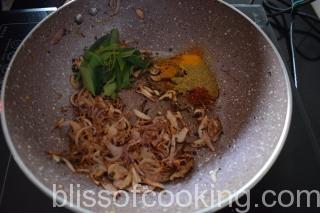 - Now add all the dry spices, curry leaves and toss.