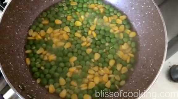 - If you are using frozen green peas and corn kernels, then defrost them.