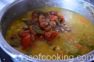 • Add the onions to the cooked dal and let it boil on low heat for 5 to 10 minutes.