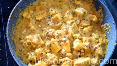 - Add ½ cup water and paneer, gently stir and cook for 2 to 3 minutes.