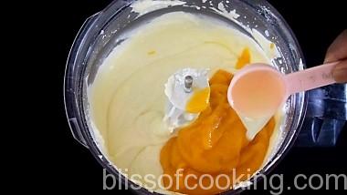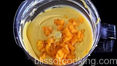 - Add the mango puree, lemon juice and whip.