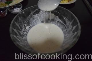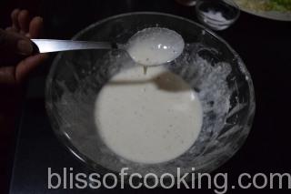 - Mix all the ingredients for the batter in a bowl by adding enough water to make a thick smooth paste.