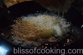 - Heat oil; and fry the baby corn in batches till golden.