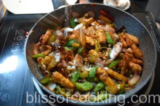 I have used dry red chillies as I love the smoky flavor imparted by the dry red chillies. I have made this dish for starter hence it is dry but this dish can be made with gravy as well.