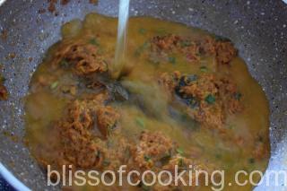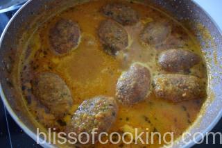 - Add the fried kofta and continue to boil for 5 minutes or till the kofta absorbers the gravy and become soft.