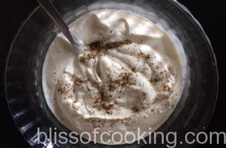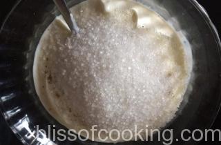 - Add sugar, saffron, cardamom and beat it with a hand blender to a smooth and creamy consistency.