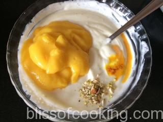 - Now add the mango puree and mix well.