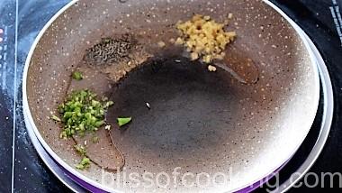 • Heat oil in a pan; add jeera, chopped ginger and green chilli. Saute