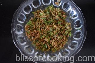 - Now add the left over stuffing and cook on low heat for 2 to 3 minutes.