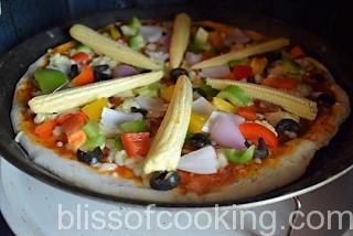 Directions for baby corn and pepper pizza