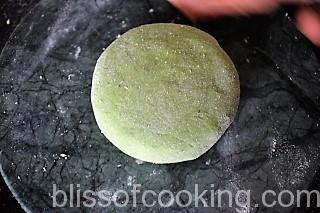 • Gently press with your palm and dust it with wheat flour.