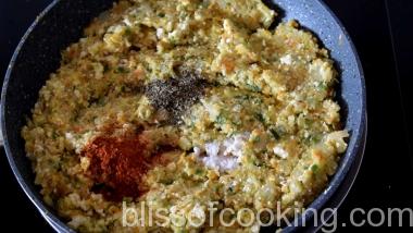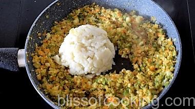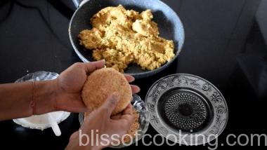 • Now take a portion of the vegetable batter, roll to a ball, flatten and stuff with cheese, close and make Pattie of desired thickness.
