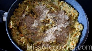 • Add grated paneer (cottage cheese), chilli flakes, oregano and saute for 2 minutes.