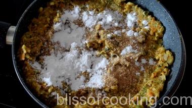 • Add salt, ¼ cup bread crumbs, 2 tablespoon corn starch, and lemon juice and mix well.