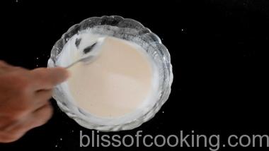 • In a shallow dish mix 2 tablespoon corn starch, maida and make slurry by adding water.