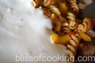 Béchamel is nothing but the simple white sauce made with white flour, butter and milk and the tangy red sauce made of tomatoes and seasonings. I have given the complete recipe of Bechamel and Pizza/Pasta sauce. You can use any mix of your favourite vegetables for this recipe and I am sure you will be able to churn out the yummiest pasta.