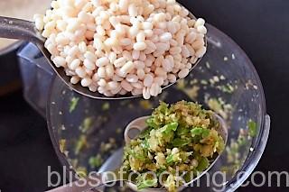 - Grind ginger and green chillies and then add the dal and hing, grind to a coarse paste. Try not to add water.