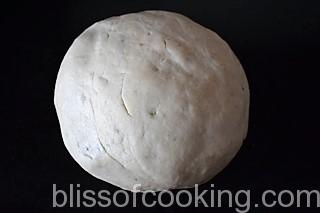 - In a large bowl mix maida, suji, kalonji and salt. Mix well, add the dal paste and make firm dough. You might not need water at all depending on the thickness of the dal paste.