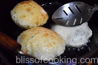 - Heat oil and fry in batch of 3 to 4 on medium heat. If you want the Poori to be crisp then lower the heat when the Poori fluffs up.