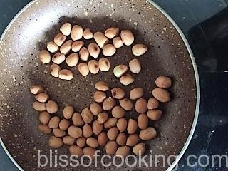 - Dry roast peanuts on low heat, set aside