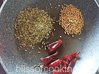 - Dry roast dhania, chilli and sauf and then add hing and haldi.