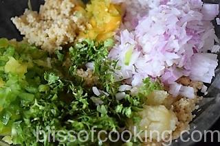 - In a large bowl transfer both the millets, and all the vegetables and mix.