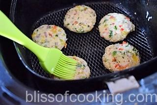 - Air fry them also in a preheated air fryer by brushing the patties with oil.