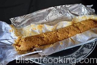 Homemade Hot Dog (Vegetarian) is made with soy flakes and tofu. This delicious hot dog is easy to make. It is quite filling and nutritious. It can be prepared well in advance and refrigerated. These hot dogs are quite versatile and can be eaten roasted on its own or used in buns. You can even slice and fry them and serve as starters or make biryani.